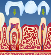 Bildet viser en manglende tann i overkjeven. Nabotennene har fyllinger og tilfellet egner seg derfor godt for brobehandling.